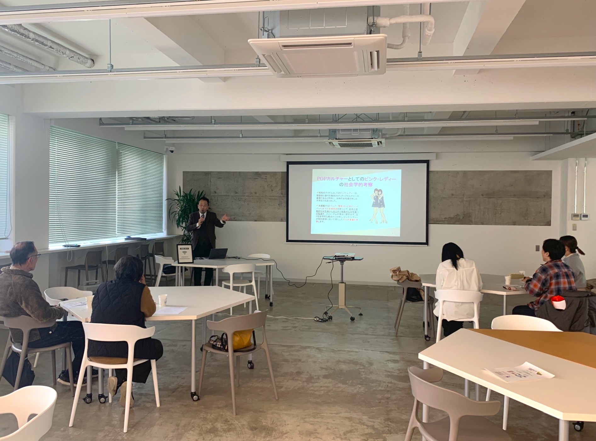 講師は、社会科学部 経営社会学科 福本 章 先生で、テーマは「POPカルチャーとしてのピンク・レディーの社会学的考察」です。
